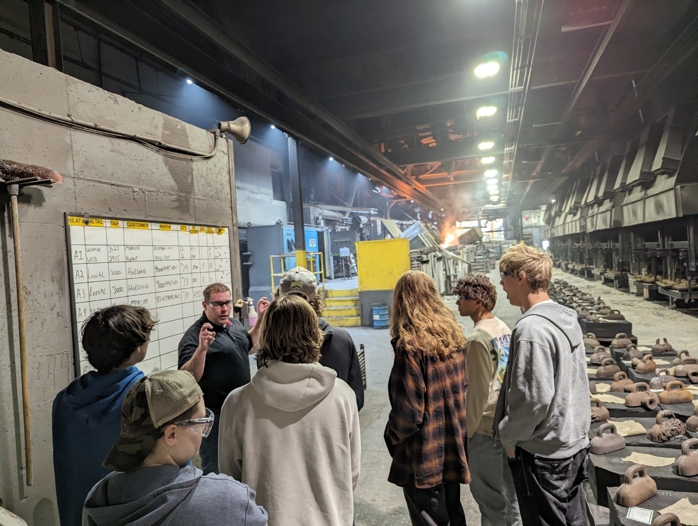 They started their morning at Eagle Alloy, an employee-owned foundry, and watched melted steel become molded into castings.